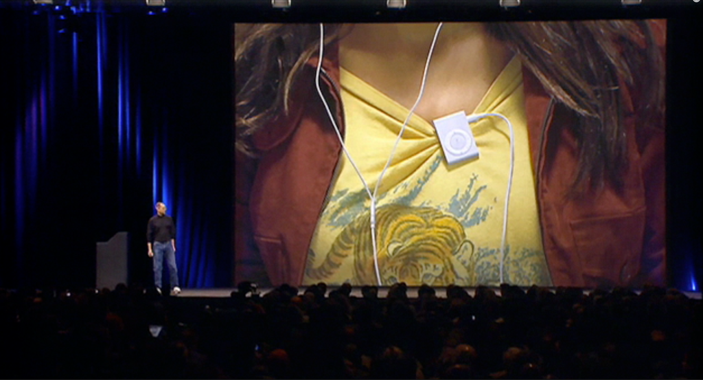 Utilisation d’une image en pleine page par Steve Jobs pour parler de l’iPod.