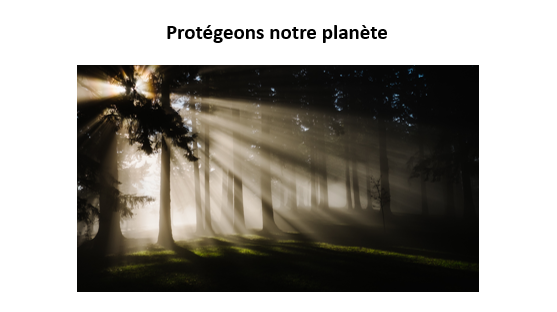 Dans cette deuxième diapo, J’insère l’image en pleine page et je remanie le titre pour qu’il ait plus d’impact. J’ajoute une police plus personnelle et je mets le mot “notre” en majuscule pour qu’il ait plus d’impact.